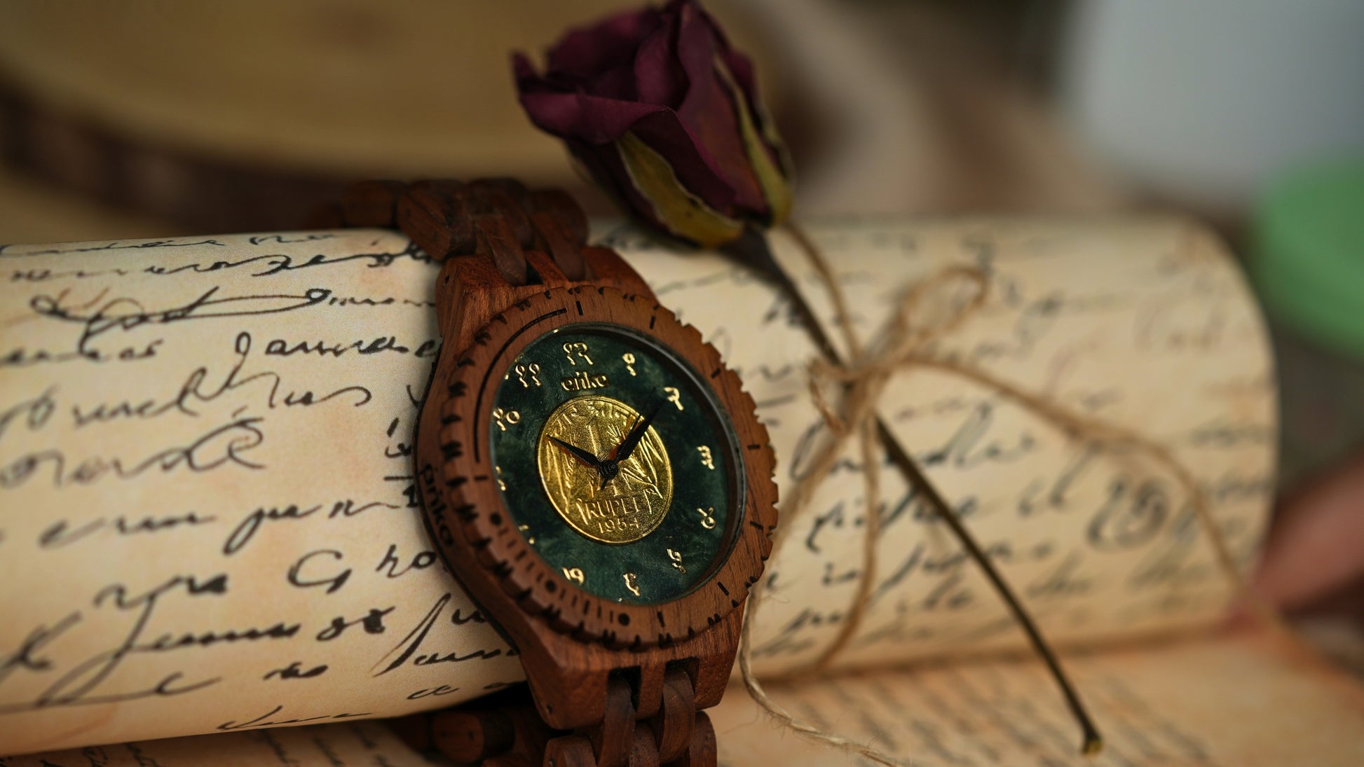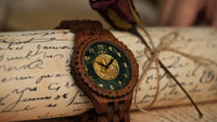 Embedded into hand-carved oak wood, the coin forms the centerpiece of a luxurious, handcrafted timepiece. Oak’s natural grain enhances the metallic finish, creating a wearable artifact that combines elegance, heritage, and craftsmanship.