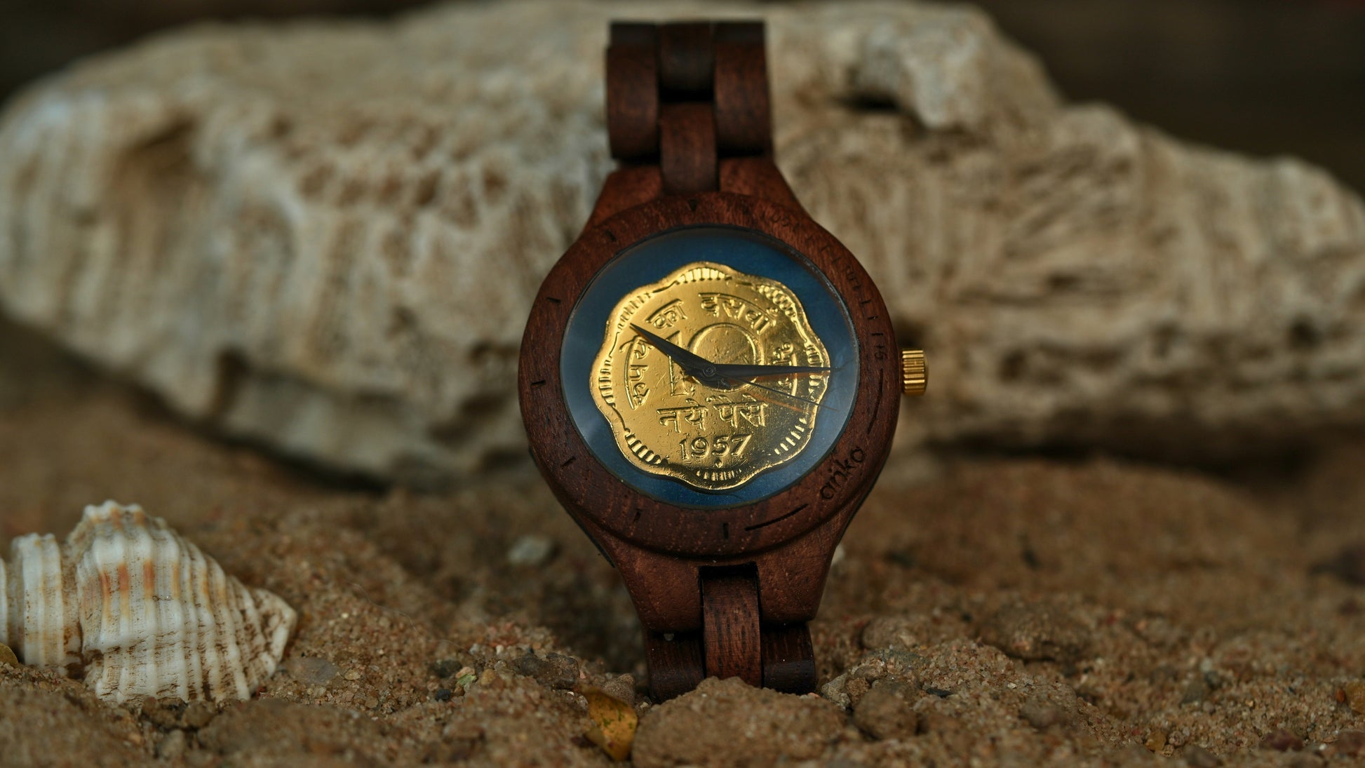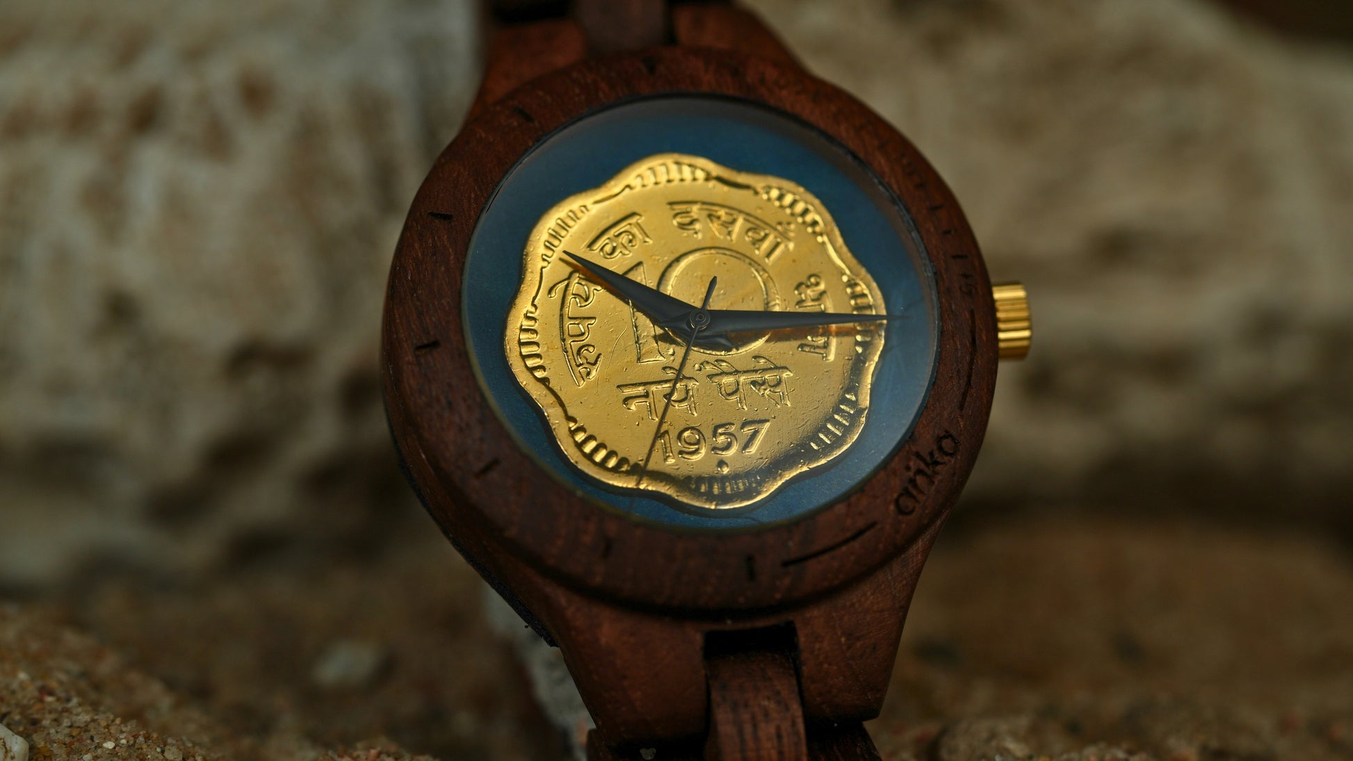 Honor India’s post-independence journey with the 1957 Bharat 10 Paisa coin, featured in a handcrafted Anka wooden watch. Minted in the formative years of the republic, this coin reflects the economic and cultural optimism of the era.