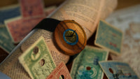 Embedded in oak wood, it becomes a historic artistic expression fused into a functional accessory.