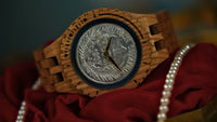 Handcrafted into oak wood, the coin becomes the centerpiece of a luxurious timepiece. Oak’s natural texture complements the Silver, producing a watch that is elegant, functional, and historically rich.