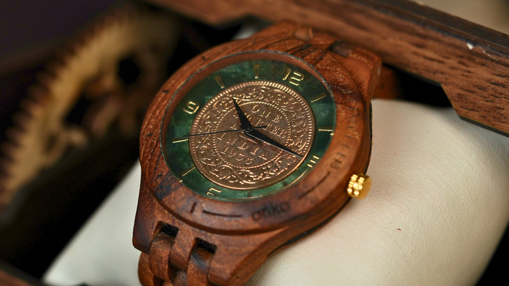 Step into the closing chapter of George V’s era with the 1936 British India ¼ Anna coin, beautifully set into an Anka handcrafted wooden watch. Minted during a moment of global and regional transition, this coin carries deep historical relevance.