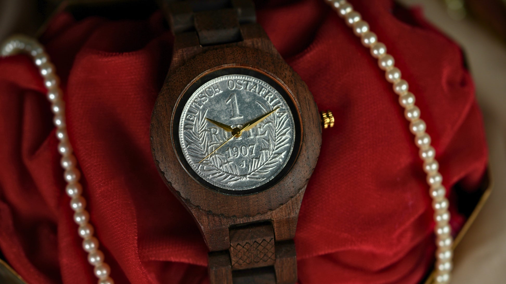 Own a tangible piece of colonial history with the 1907 German East Africa 1 Rupie coin, now featured in an Anka handcrafted wooden watch. Minted under Kaiser Wilhelm II, this coin reflects Germany’s imperial administration and trade networks in East Africa.