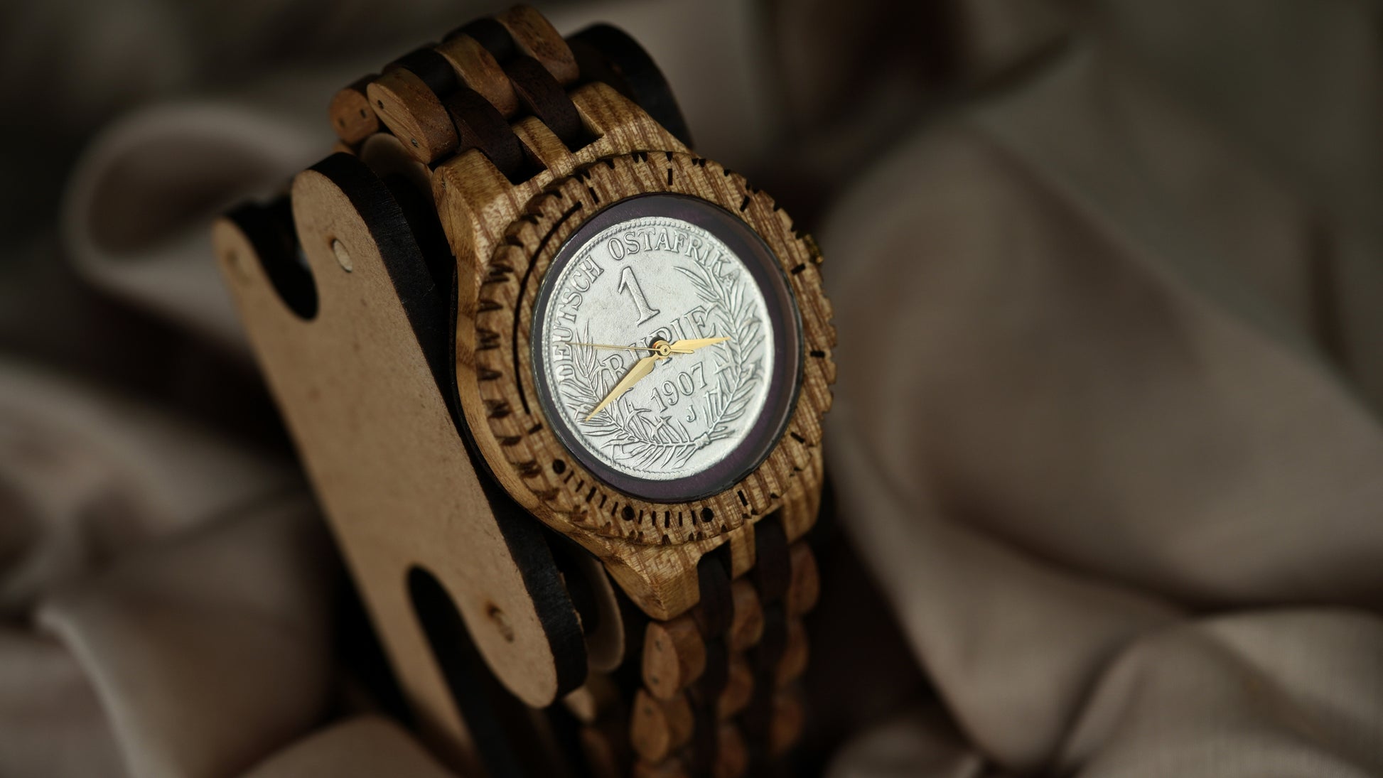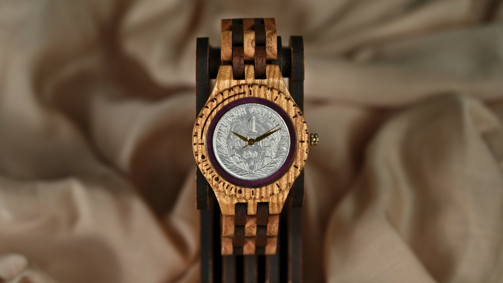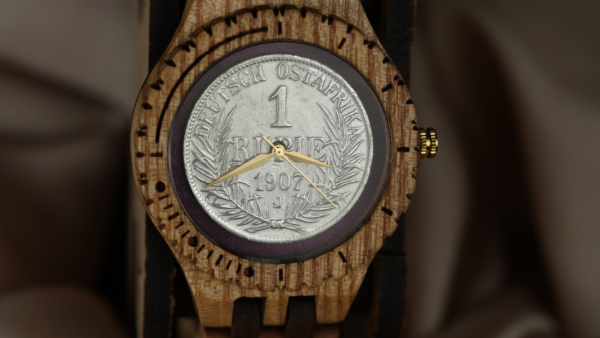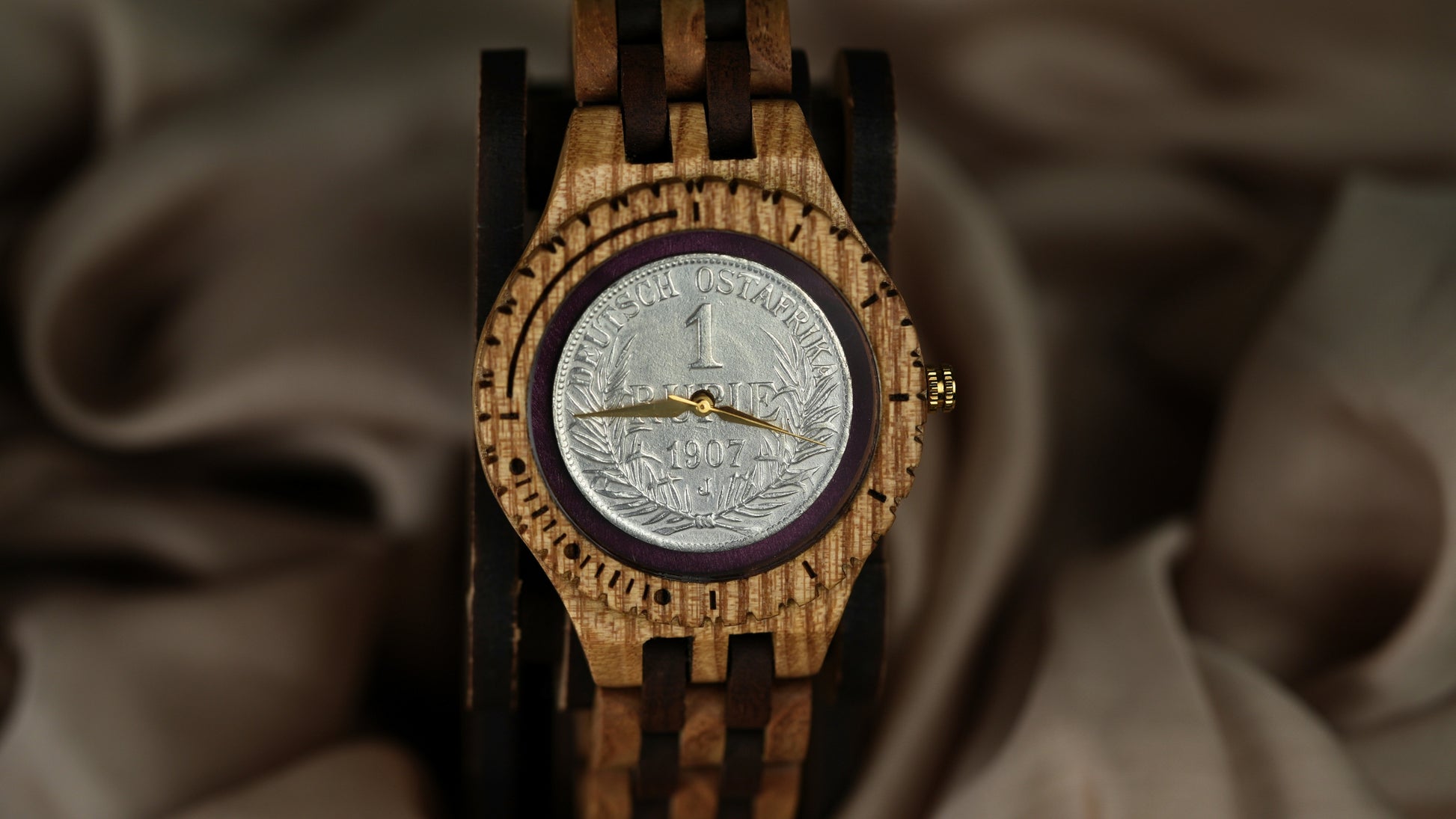 Own a piece of German colonial history with the 1907 German East Africa 1 Rupie coin, now integrated into an Anka handcrafted wooden watch. Minted under Kaiser Wilhelm II, this coin reflects the economic and administrative presence of Germany in East Africa prior to World War I.