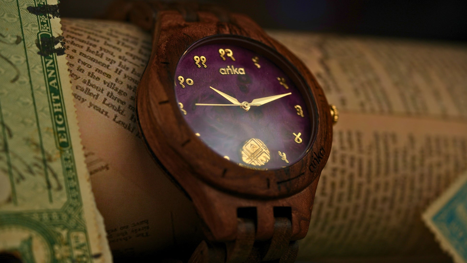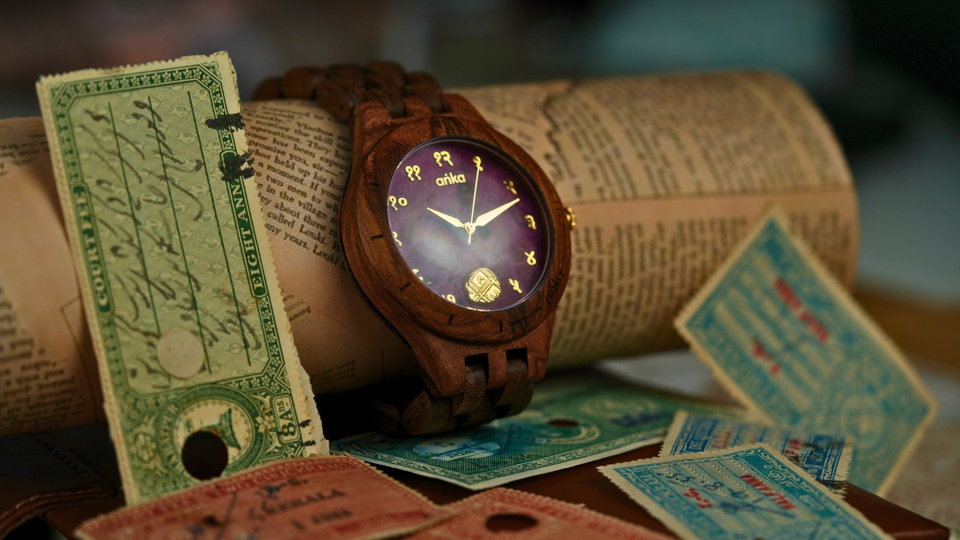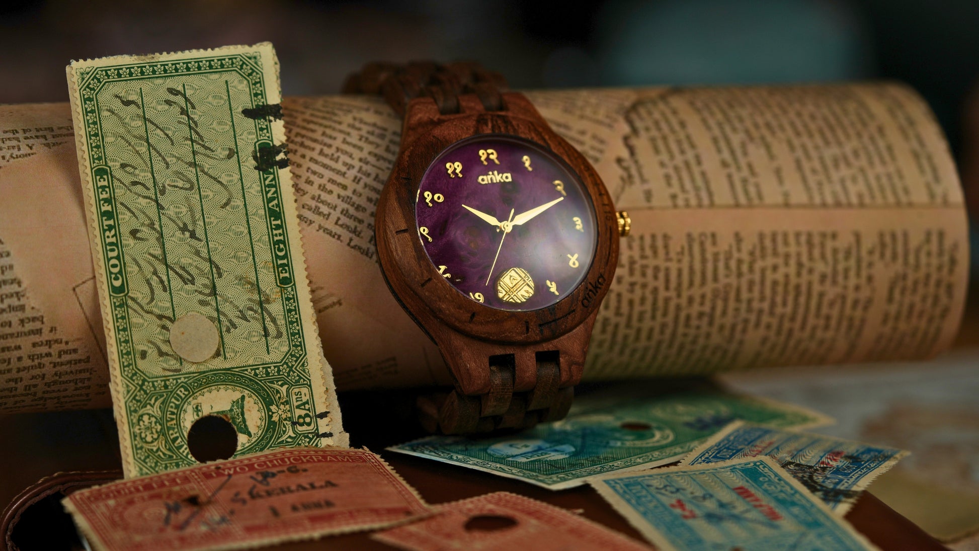 Weighing 3.17 g with a diameter of 13 mm, this copper coin circulated widely in everyday trade, reflecting the administrative discipline of 18th century Mysore. Set into an Anka handcrafted wooden watch, it becomes a refined wearable relic of southern India’s royal and economic heritage.